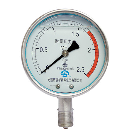 不锈钢耐震压力表因具有良好的抗震性能,所以可用于有机械强烈振动的环境,并耐受介质压力剧烈脉动及冲击载荷,用途更加广泛。