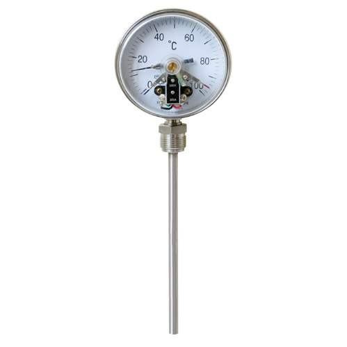 电接点双金属温度计具有无汞害、指示清晰、坚固、耐震等特点。适用于中低温度的液体、气体和蒸汽的现场检测。当为其配以相应的电气元件时,即能对被测控的温度系统实现发信报警或自动控制。
