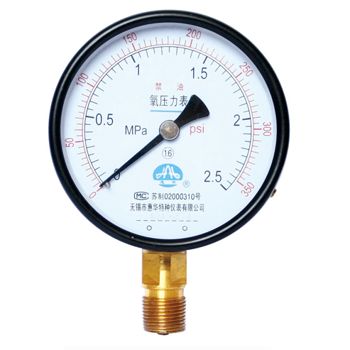 压力表测量的是表压因为氧气的强氧化性这一化学性质导致在测氧气压力时需要特殊的压力表,这种压力表就是氧气压力表。氧气压力表国家有明确的规定和指标,简单的来说有两方面的:在生产零部件到组装校验中不能接触任何油脂类产品,表盘有红色禁油标志。