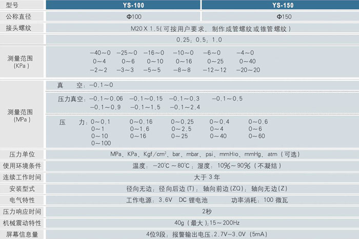 ◆6、不同的仪表有不同的压力测量范围,正常情况下可以在超过量程的10%以内使用,进一步超量程使用可能会造成传感器的永久损坏,进而造成测量气体或液体的泄露,这种损坏是不可恢复的,由此造成的后果本厂不承担任何连带责任。
